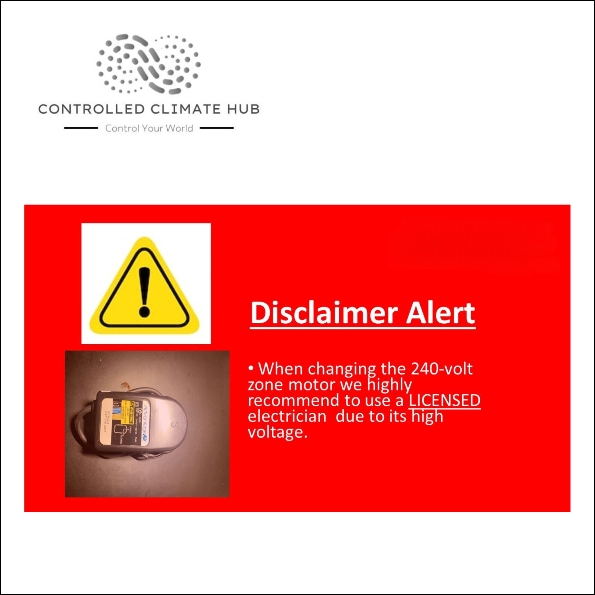 DISCLAIMER: It is highly recommended to use a licensed electrician for the installation of the 240V Damper motor due to its high voltage of 240 volt!