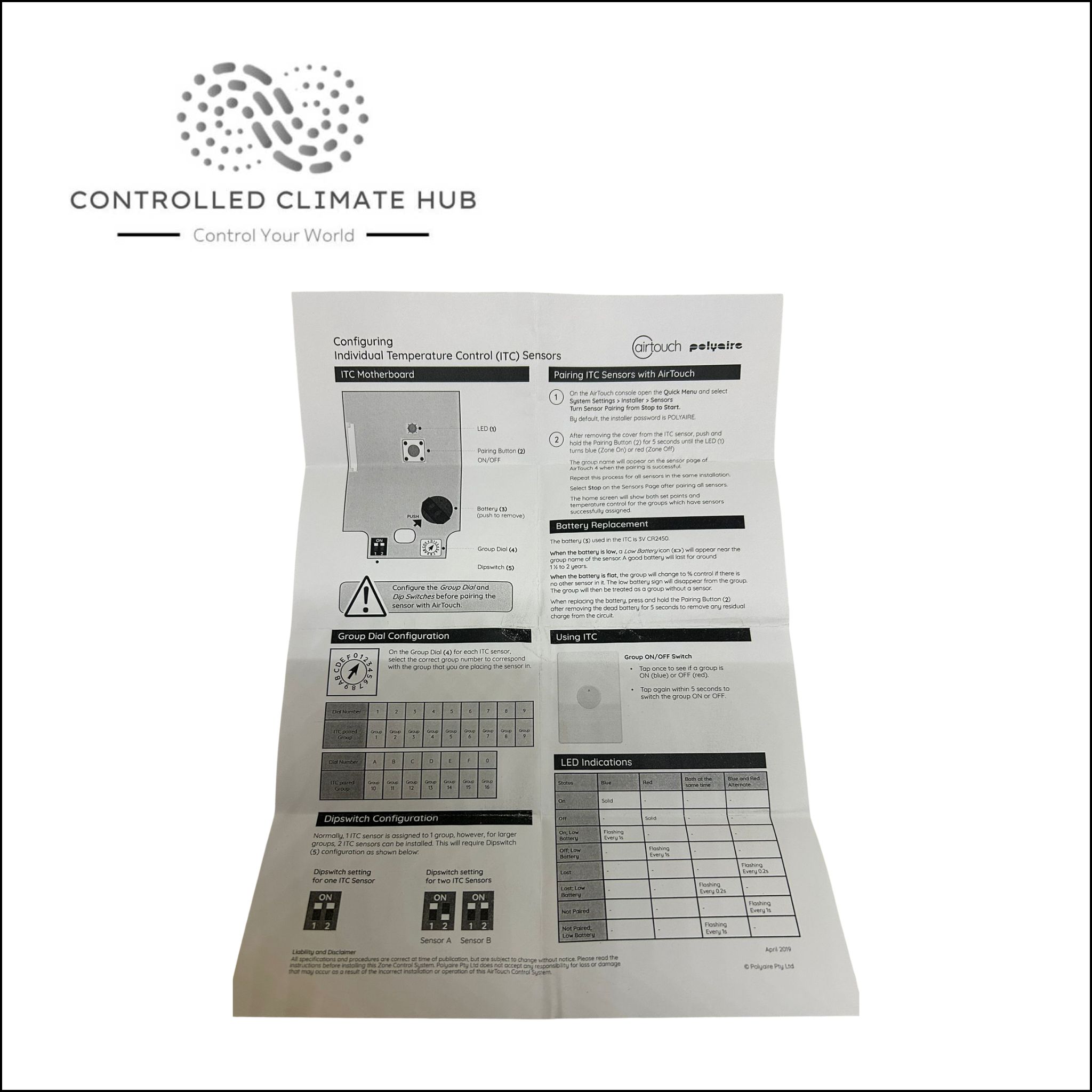 For sale is an Air Touch 4 Wireless RF Wall Sensor ITC from Polyaire in new condition.