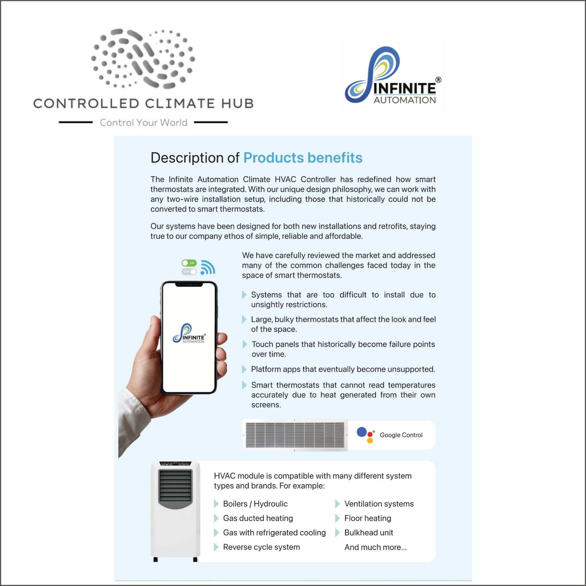 When it comes to making things smart with no need to replace equipment, the Infinite Automation range of products are designed to be installed from new or retrofitted onto existing equipment, making the most simple home, office, or equipment smart and easier to use and control.