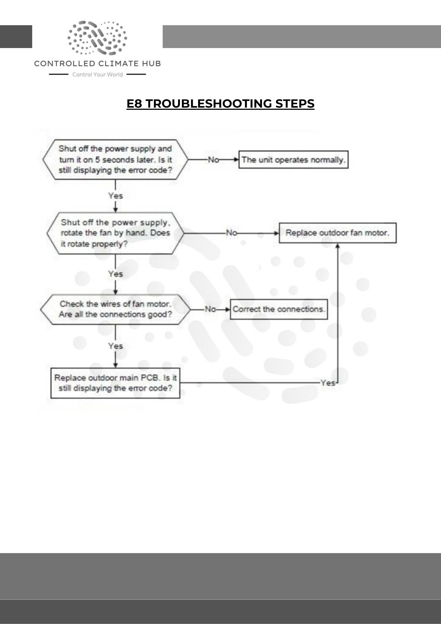 - E8 = “outdoor fan speed has been out of control”
