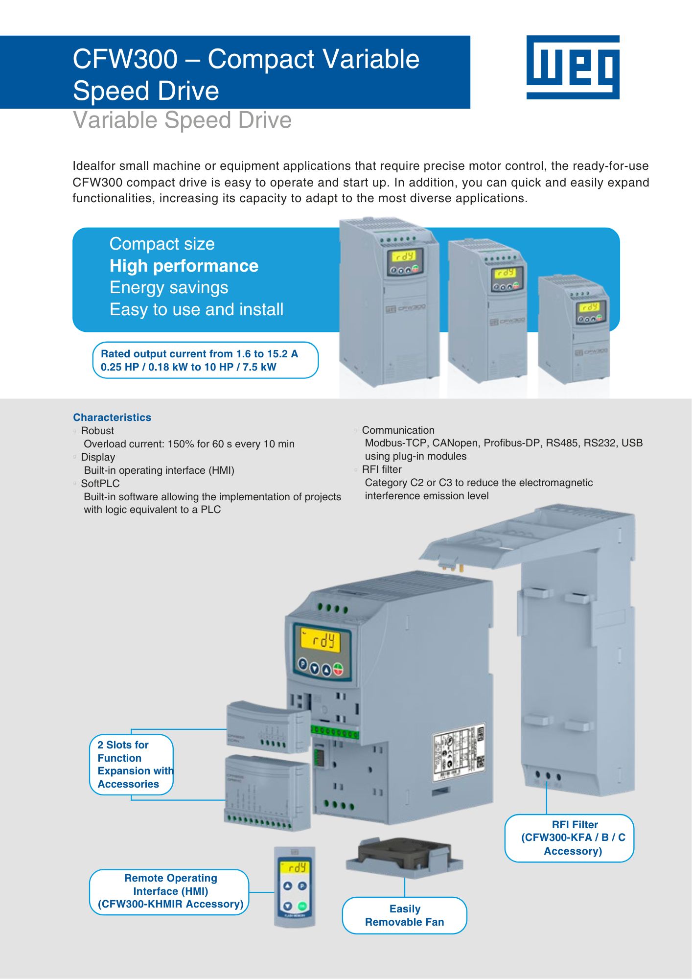 WEG CFW300 is a variable speed drive (VSD) to suit FCU-500 and FCU-700.